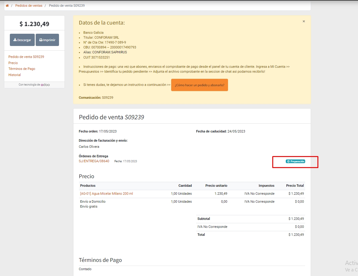 Entre todos los detalles del pedido, vas a prestar atención a los cambios de estado del mismo para que puedas estar al tanto de su progreso.